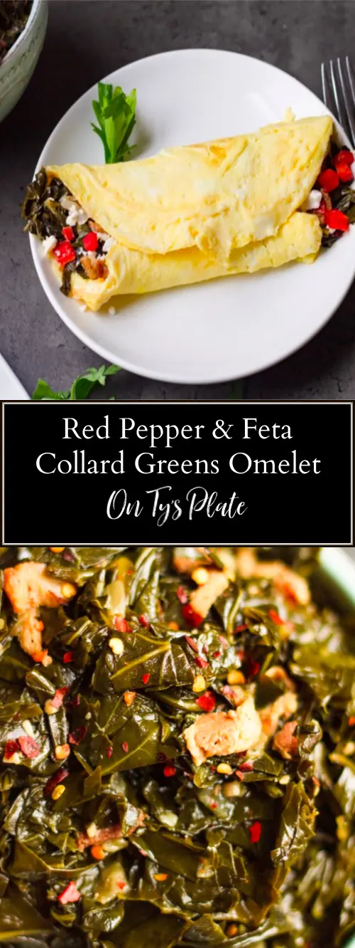Repurpose those amazing Sunday collard greens by turning them into Monday morning wonder! Make them into a deliciously fresh red pepper and feta collard green omelet.
